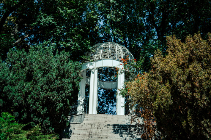 Некоторые историки оспаривают назначение ротонды как казачьей дозорной вышки, но в любом случае она — самый колоритный элемент архитектуры парка, откуда открывается живописный вид на парк. Молодожены, только что вышедшие из ЗАГСа, любят делать здесь фотосессии.