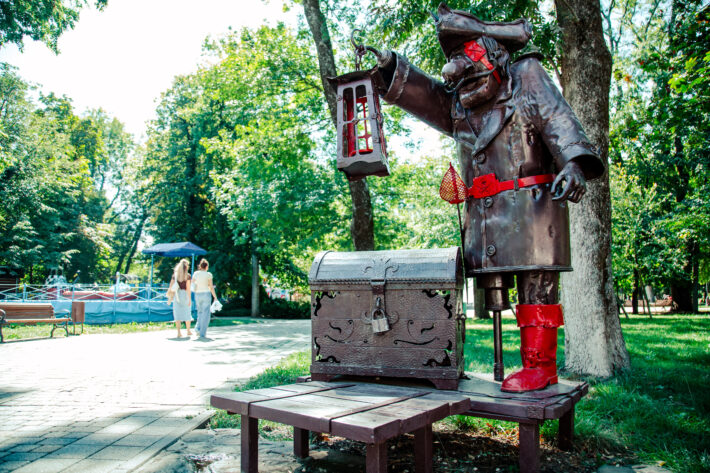 — Еще одной, скорее интерактивной, является скульптурная композиция «Пират». Она всегда вызывает много эмоций у детей и является популярной фотозоной. Вообще, наши экскурсии по Городскому саду мы проводим как для детей, так и для взрослых. Это, наверное, один из самых востребованных маршрутов среди юного поколения, смело можно отнести к детскому туризму. А еще лучше пройти этот пеший маршрут всей семьей. Ее продолжительность всего один час, расстояние — 1,5 км. Но, поверьте, вы еще долго будете гулять по аллеям парка, впитывая исторический дух нашего города под шепот вековых дубов, — завершает  нашу пешую экскурсию гид.