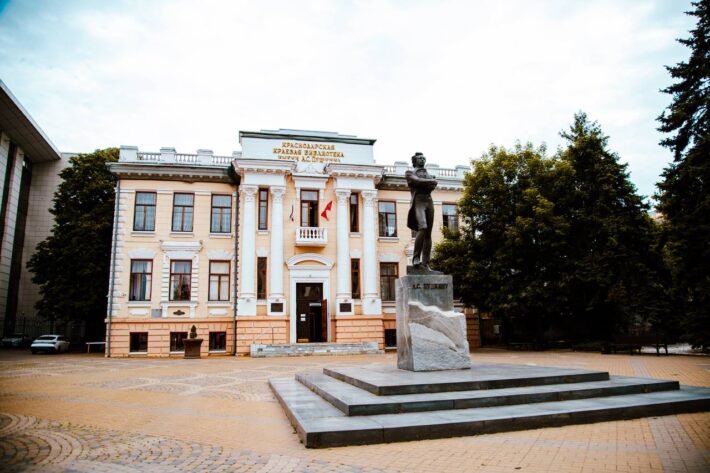 Последняя размещалась здесь и в годы советской власти. В 1946 году Краснодарский горисполком принял решение передать здание армянской школы библиотеке имени Пушкина, учрежденной еще в 1900 году, которая и переехала туда после восстановления особняка в 1956 году.