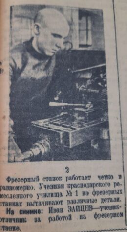 Сегодня сказали бы: подобные фоторепортажи повышают престиж рабочих профессий. Кстати, Краснодарское ремесленное училище было создано на базе нашего станкостроительного завода им. Седина как учебное заведение начального профобразования по подготовке квалифицированных рабочих. Здесь по 2-3 года учились подростки 14-17 лет, как правило, после школы-семилетки.