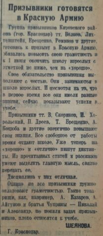 А эта заметка вызывает недоумение у нынешней молодежи: почему призывники в Красную Армию повышали грамотность в школах взрослых? А ведь это известный факт из истории СССР. С 1919 года до начала 1940-х в стране шла кампания по ликвидации безграмотности — уникальный и самый масштабный образовательный проект всей истории России.