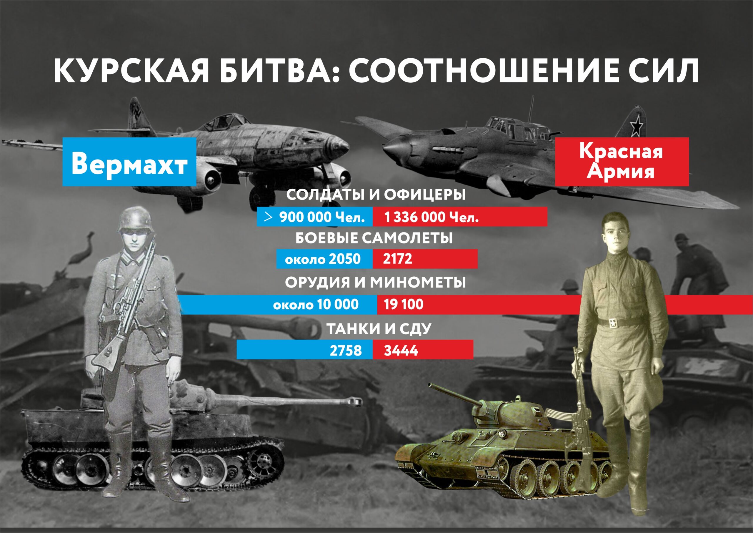 Впервые в течение двух лет борьбы советские войска в Курском сражении имели превосходство над противником в силах и средствах.