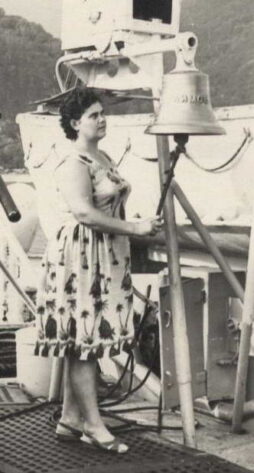 Валентина Пархоменко последнее время перед гибелью теплохода работала на нем заведующей камерой хранения. На фото — у рынды «Адмирала Нахимова».