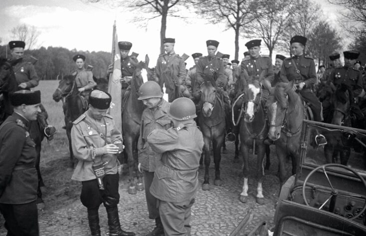 Казаки корпуса под командованием генерал-лейтенанта Н. Осликовского в ходе Берлинской операции, пройдя с боями более 250 км, разгромили четыре вражеские дивизии и взяли в плен около 14 000 солдат и офицеров вермахта. Корпус овладел г. Виттенбергом и районом Ленцен (юго-восточнее Гамбурга), первым выйдя на реку Эльбу. На западном берегу Эльбы, в районе Гартов, кавалеристы встретились с американцами 13-го корпуса под командованием генерал-майора Гиллема.