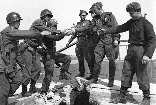 25 апреля 1945 года остатки вооруженных сил гитлеровской Германии были разрезаны на две части, до конца войны оставались считанные дни. Долгожданная встреча союзников и ощущение близкой победы переполняли искренней радостью чувства как советских, так и американских солдат и командиров. Хотя высшее руководство США и Англии уже тогда начало вынашивать планы будущей войны с СССР, большинство рядовых американцев и англичан в то время искренне верили в дальнейшую дружбу союзников, победивших общего врага — фашизм.