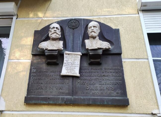 Мемориальная доска генералам Павлу и Михаилу Бабычам. Краснодар, угол Пушкина и Красноармейской.