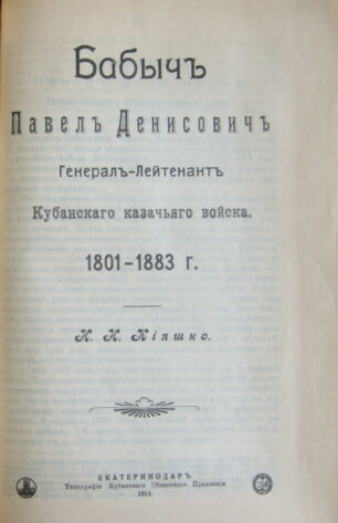 Титул статьи И.И. Кияшко о генерале Бабыче. Екатеринодар, 1914 год.
