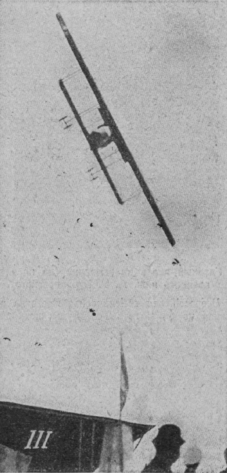 Четыре казака, которые помогали в один момент, отскочили. Аппарат быстро и плавно понесся вперед. Не прошло и секунды, как он, чуть покачнувшись, отделился от земли и плавно поднялся в воздухе саженей на 10-15. Описав 5 кругов, Габер-Влынский при закрытом моторе почти вертикально опустился около трибун.