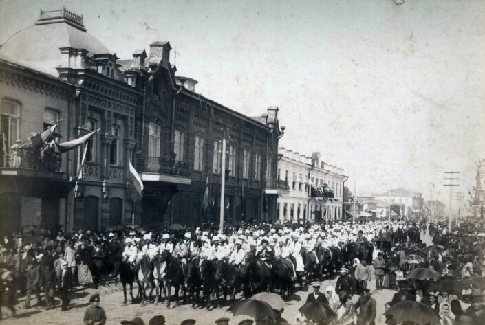 «Обыкновенно все население от мала до велика высыпало на станичные площади в праздничных нарядах, чтобы посмотреть на своего любимого атамана и услышать его ласковое слово. Часто после смотра на площадях устраивались общественные обеды с песельниками, джигитовкой и пляской».
