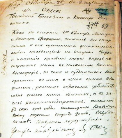 Черноморцы под командованием секунд-майора Чернышова занимались работами по транспортировке продовольствия. В один из переходов на море разыгралась буря и корабль Чернышова вместе с ним не доплыл до места назначения.