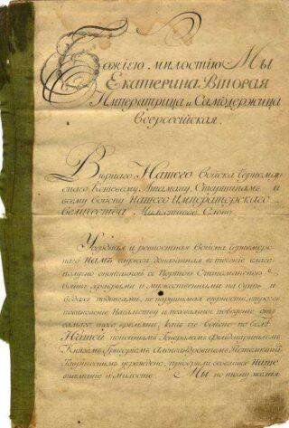 Решение нашлось — 30 июня 1792 года императрица Екатерина II подписала Жалованную грамоту Черноморскому казачьему войску на владение кубанскими землями. «В изъявление особливых внимания и милости, за мужественные подвиги на суше и водах и неустрашимую верность в течение благополучной войны с Портою Оттоманскою» казакам был пожалован «остров Фанагория с землями, между Кубанью и Азовским морем лежащими». Главной задачей черноморских казаков была определена защита южно-российских рубежей «от набегов народов закубанских».